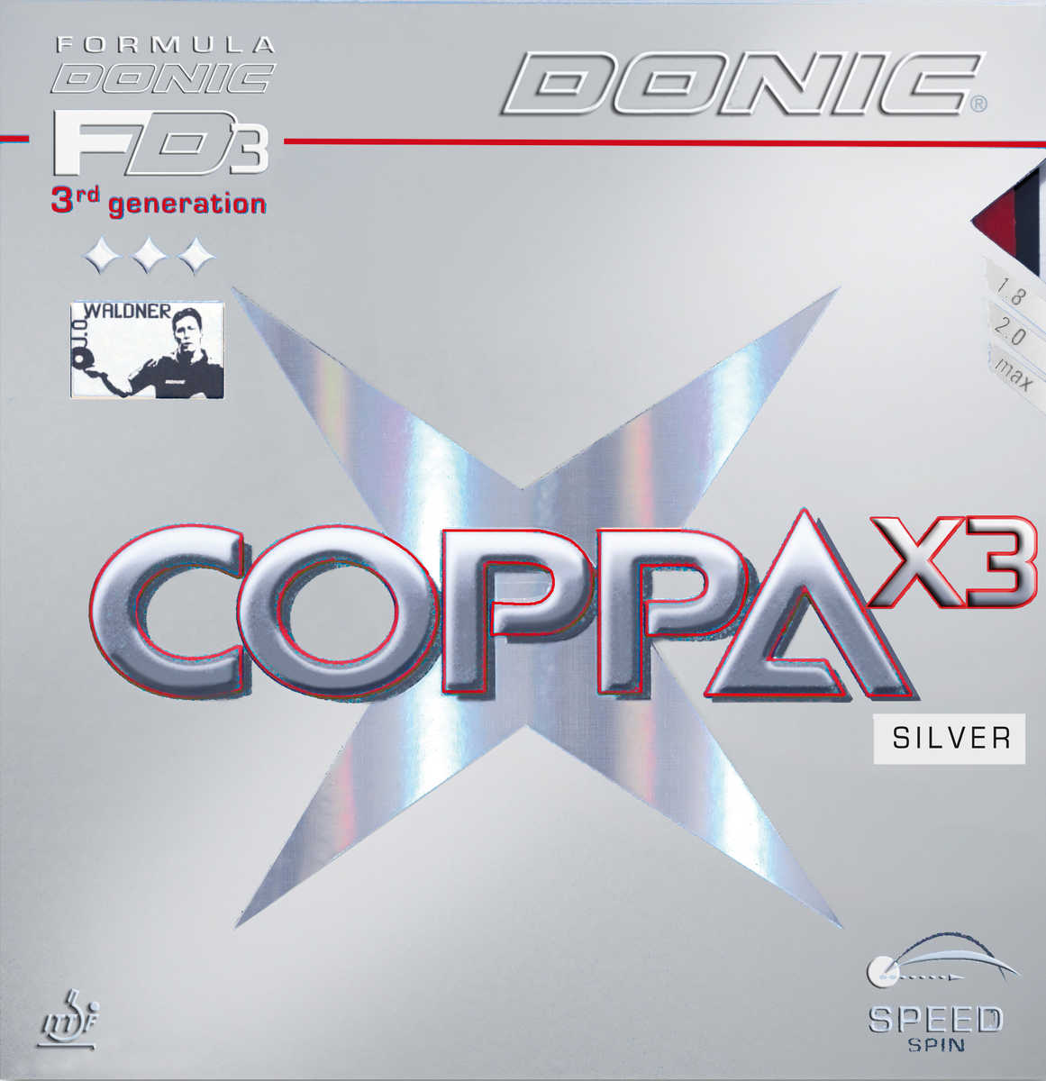 Le COPPA X3 nous rappelle les revêtements fraîchement collés avec de la colle rapide ! Un son grandiose pour une bonne vitesse facilement contrôlable. De ce fait, le COPPA X3 fera un grand nombre d'adeptes. Un contrôle de balle excellent et beaucoup de sensations de toucher offrent un grand plaisir de jeu. Même les joueurs offensifs/polyvalents jouent d'emblée sensiblement plus fort grâce à cette variante. Caractéristiques : très tendre, avec un son fabuleux et un contrôle optimal.