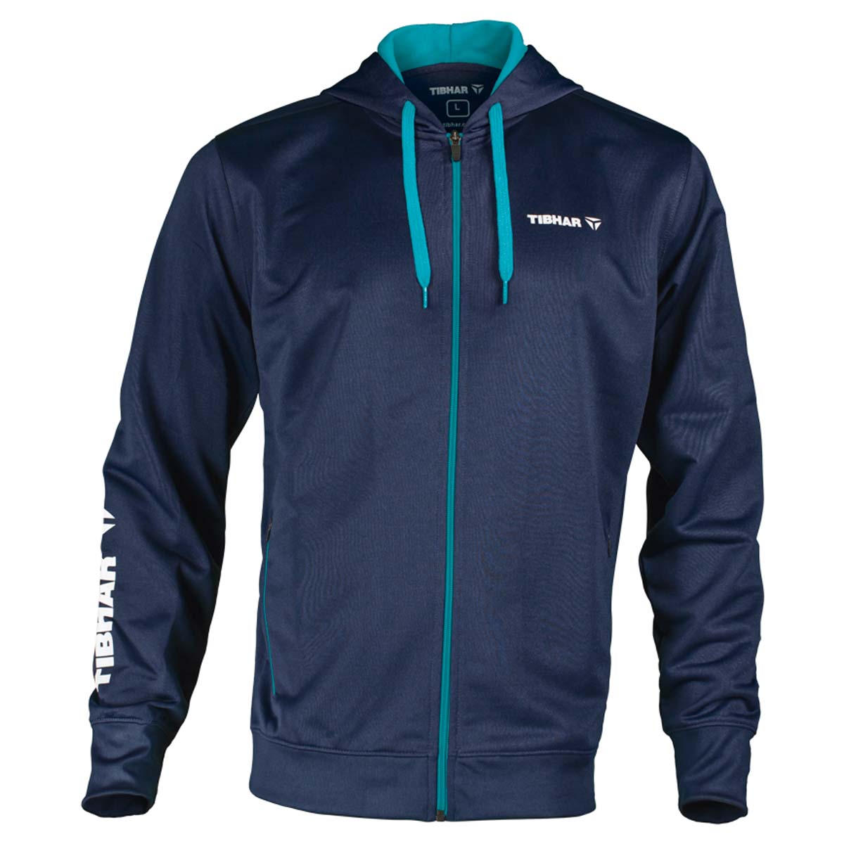 Avec capuche. Deux poches latérales avec fermeture Eclair. Poignets et taille élastiques. Impression TIBHAR au revers de la manche.