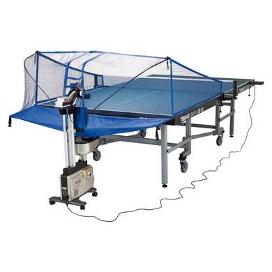 Robot de tennis de table de qualité supérieure, ultra robuste, très facile à monter et à utiliser. Le filet pliable se clipse tout simplement dans le robot qui, grâce à ses roues, est placé derrière la table dans une position parfaite. Le boîtier de contrôle télécommandé permet au joueur de programmer toute une série de fonctions différentes. Ce robot vous convaincra par ses variétés de rotations supplémentaires réalisables sur une plus longue trajectoire. En plus de la fonction aléatoire qui permet de servir des balles courtes ou longues, vous aurez la possibilité de réaliser toute une série d'exercices avec une succession de balles allant jusqu'à 999 balles et 11 différents positionnements sur la table.