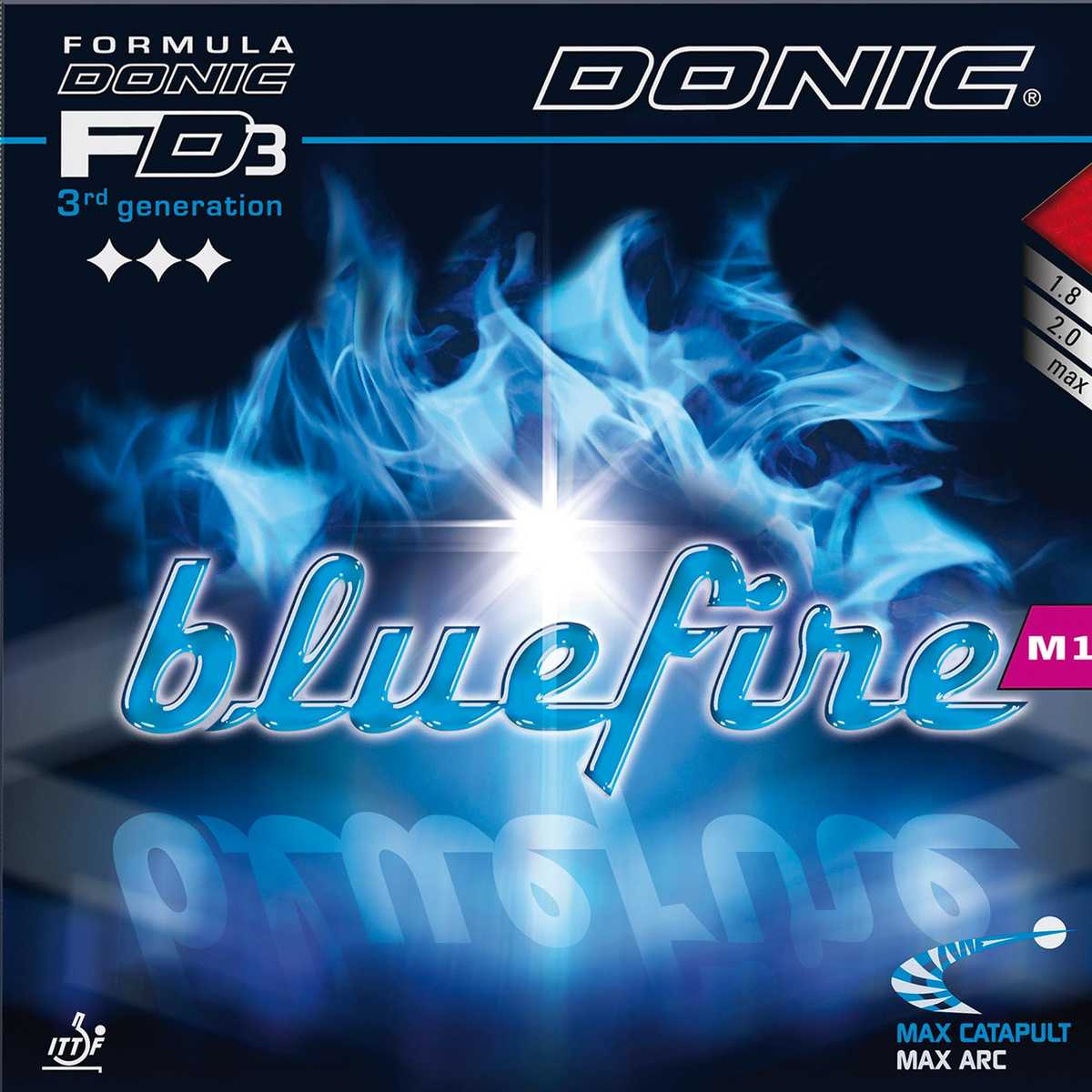 Les revêtements BLUEFIRE bénéficient de la technologie Formula DONIC FD 3, combinaison parfaite d'une mousse bleue aux alvéoles larges et d'un caoutchouc extrêmement adhérent. Le caoutchouc avec sa structure de picots fins et longs confère au revêtement une flexibilité maximale et une sensation de jeu extraordinaire. Le Bluefire développe une dynamique incroyable avec une courbe de la balle maximale et un effet catapulte amélioré.