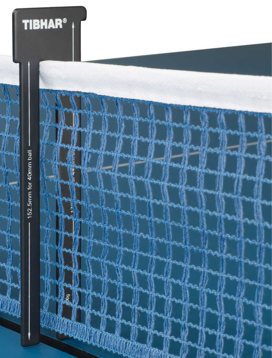 En métal, permet de mesurer la hauteur et la bonne tension du filet.